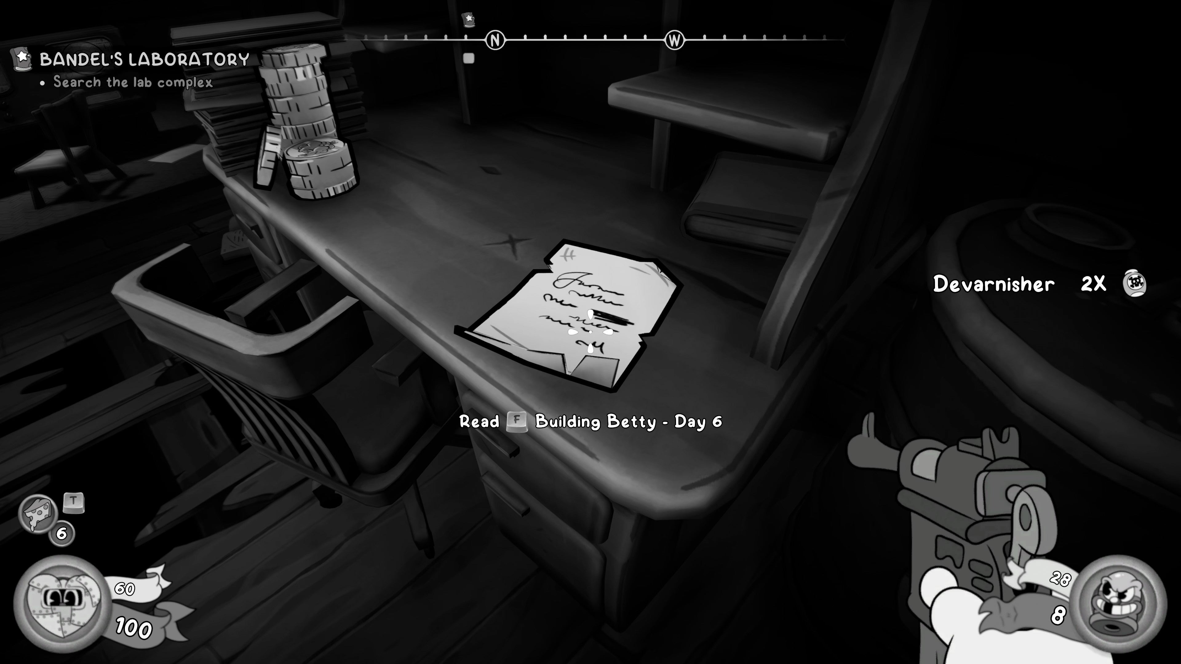Once Robo-Betty is defeated, explore the room thoroughly for Cash and other pickups. On the far side of the room, at ground level, there's a small study area where you can find a Newspaper collectible on the desk next to the microscope, and a Schematic on the table opposite.
