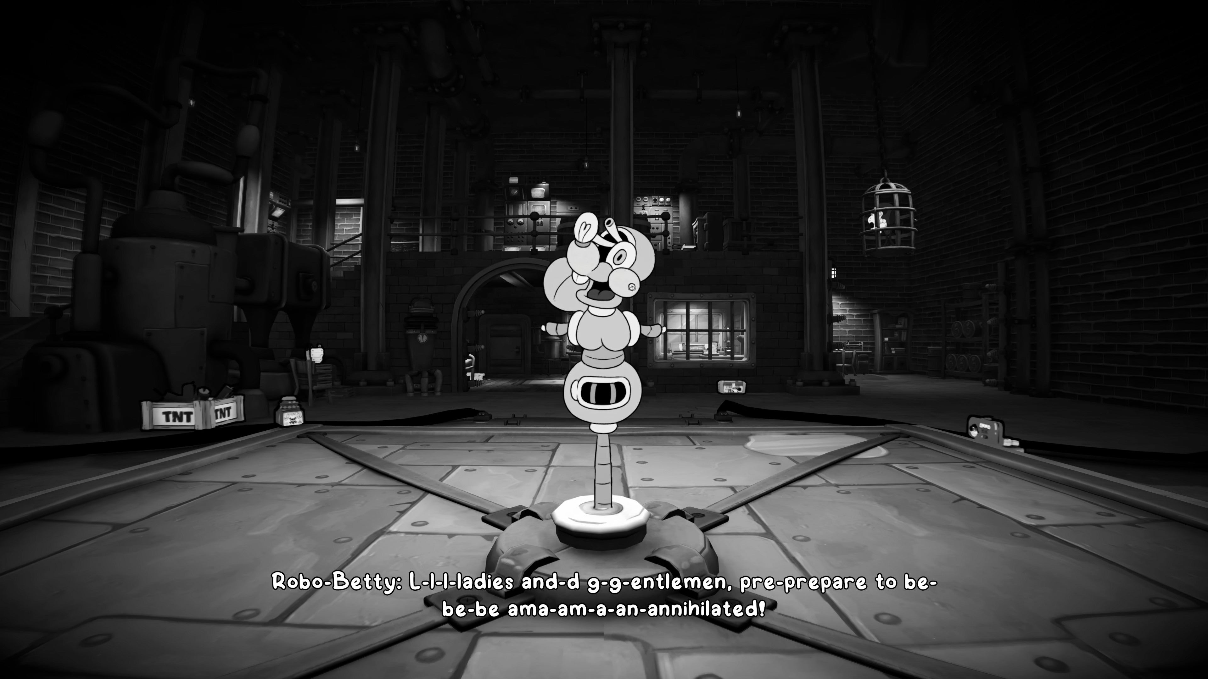 This Robo-Betty has an entirely different playstyle to the first one. It will charge at you relentlessly, and also throw bombs on the ground to try and limit your movement and cause damage if you're not careful where you step.