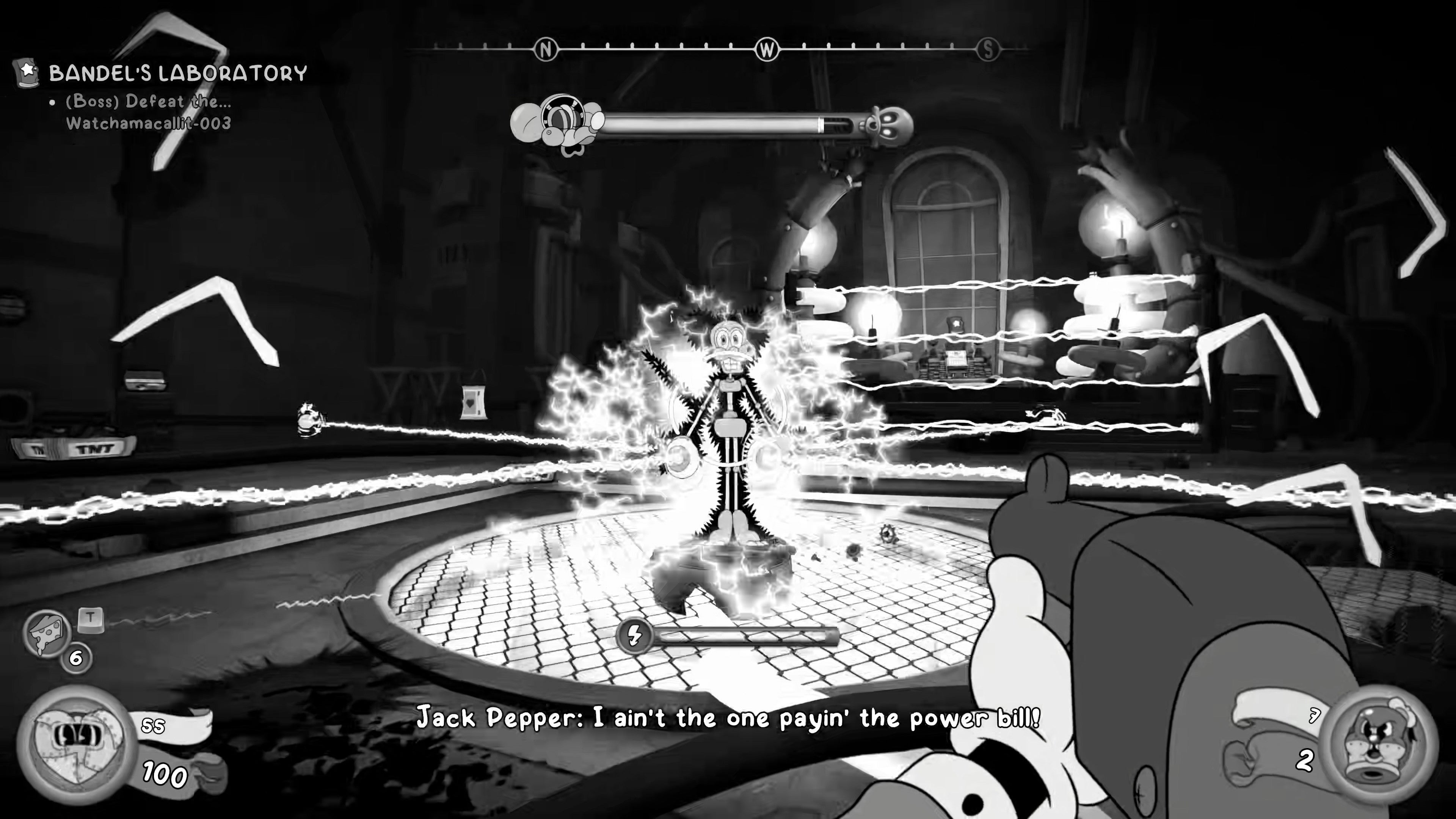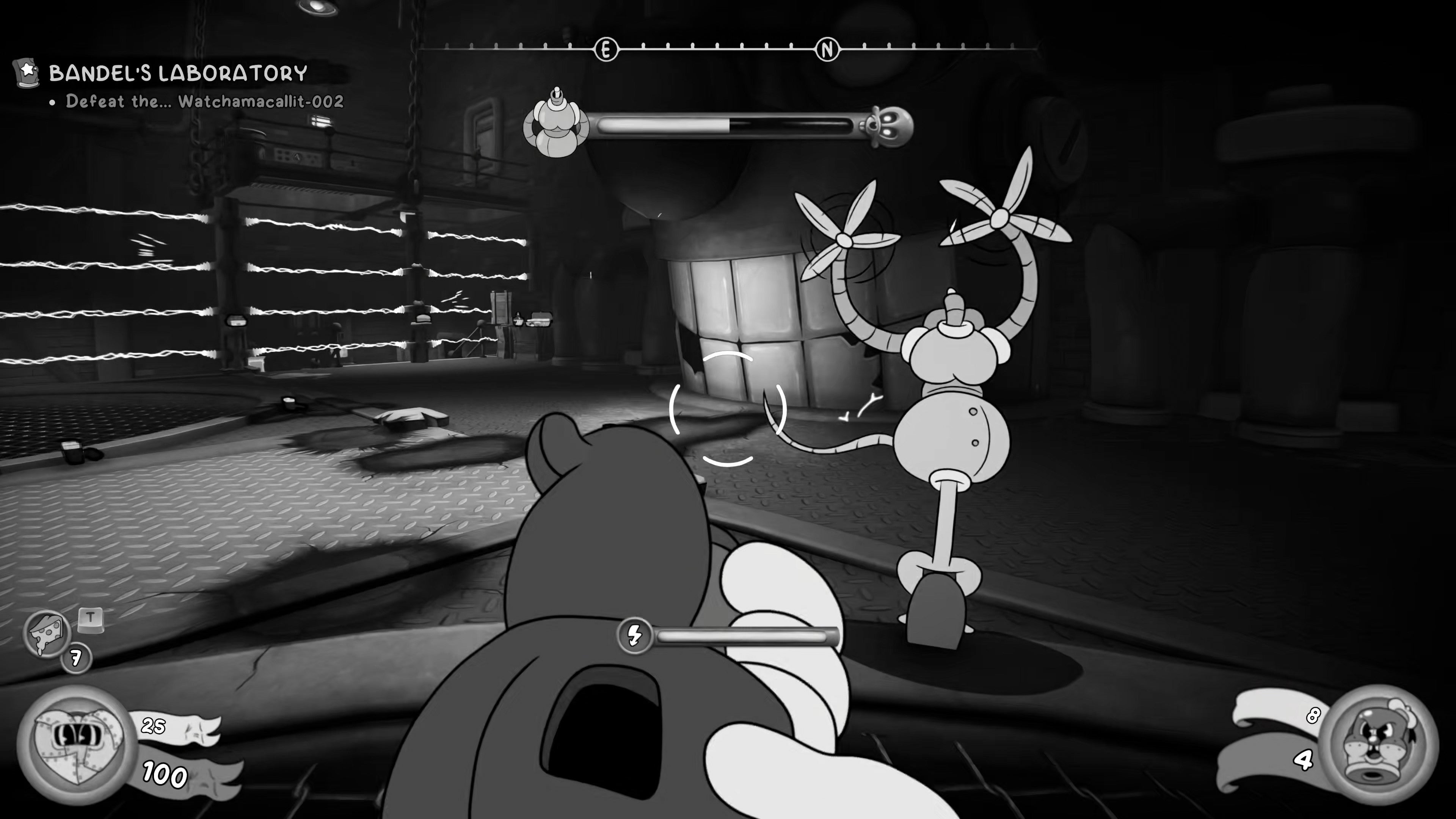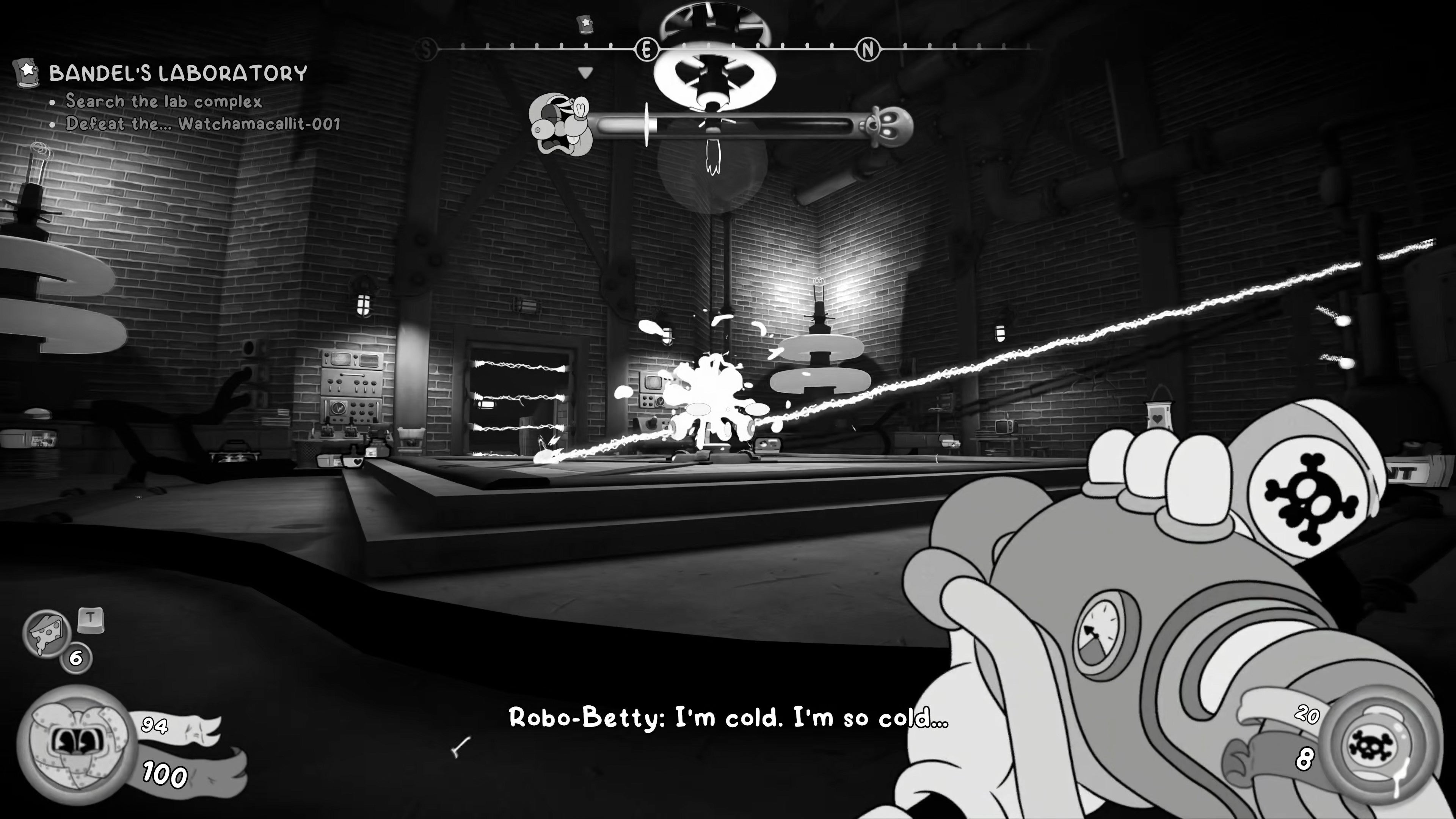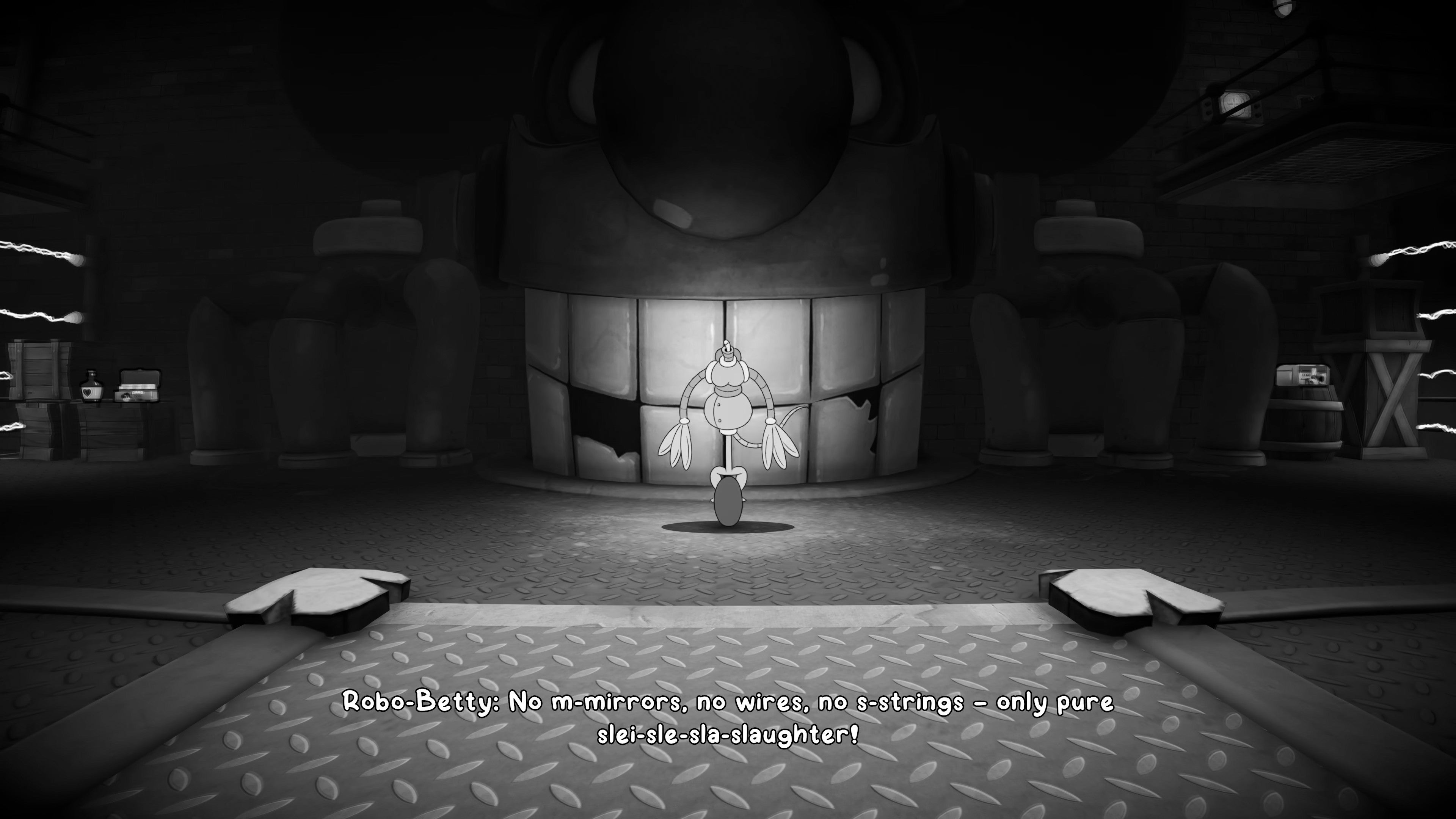 As you walk into the next room, a short cutscene will play which introduces a new miniboss - a robotic reanimation of Betty, Bandel's slain assistant. Fortunately, this recreation is rather haphazard.