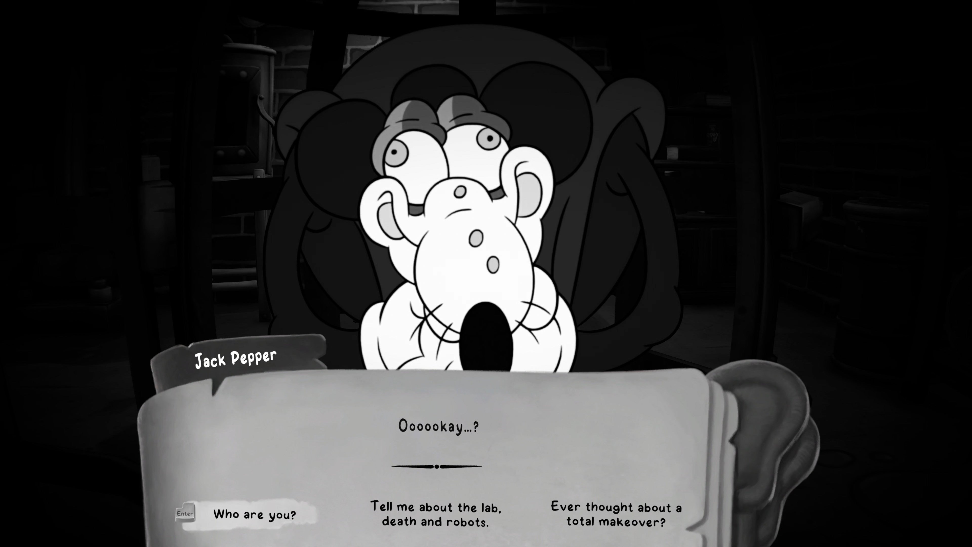 Backtrack to the projector room with the giant robot head, and approach said head. As you near, the mouth will open and another Robo-Betty will appear, this one more advanced than the first (albeit without a head).