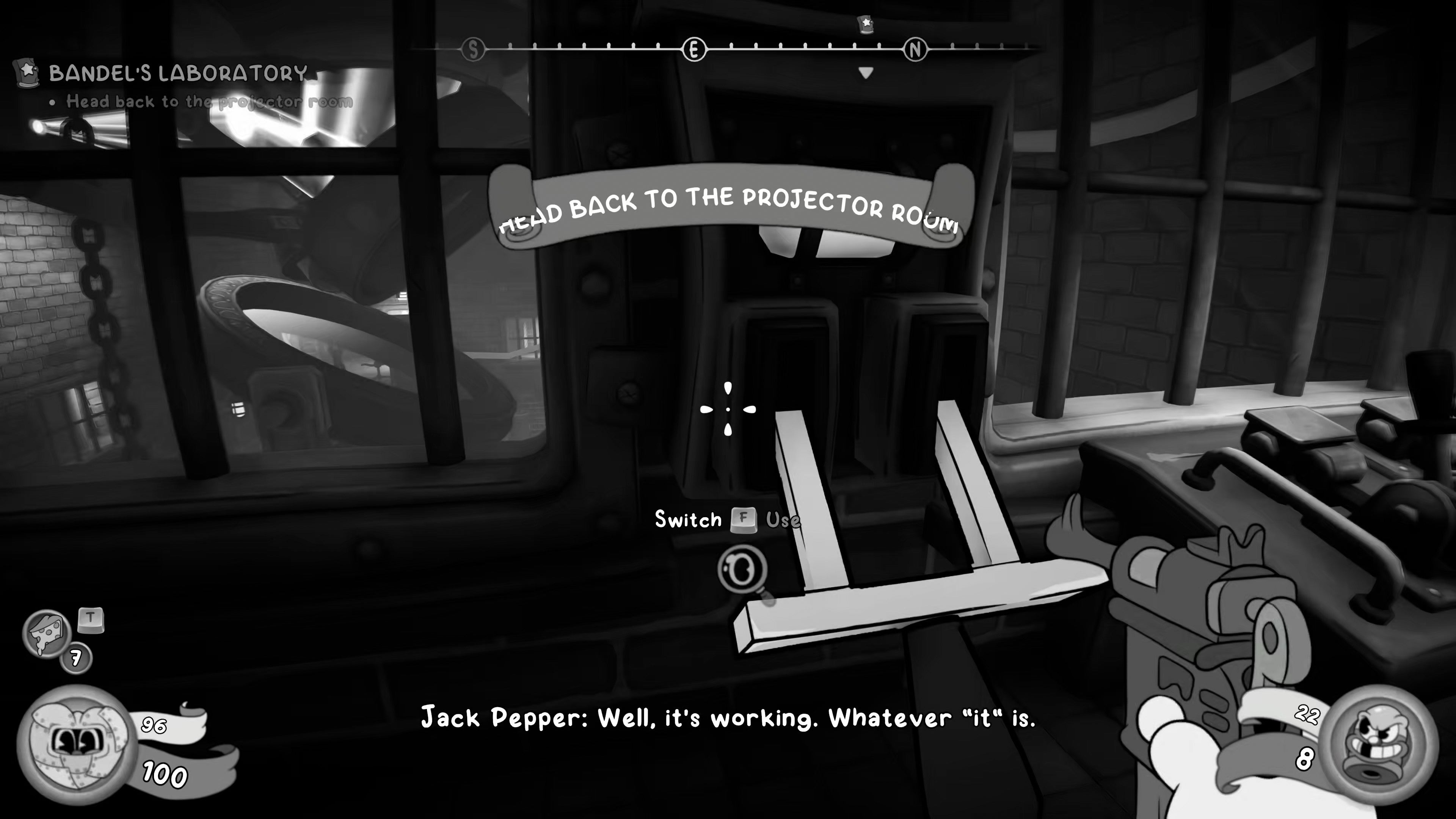Once you've finished speaking with Igorrr, head through the south exit and follow this path into a new room, where you're given the objective to "Crank up the projector's power".