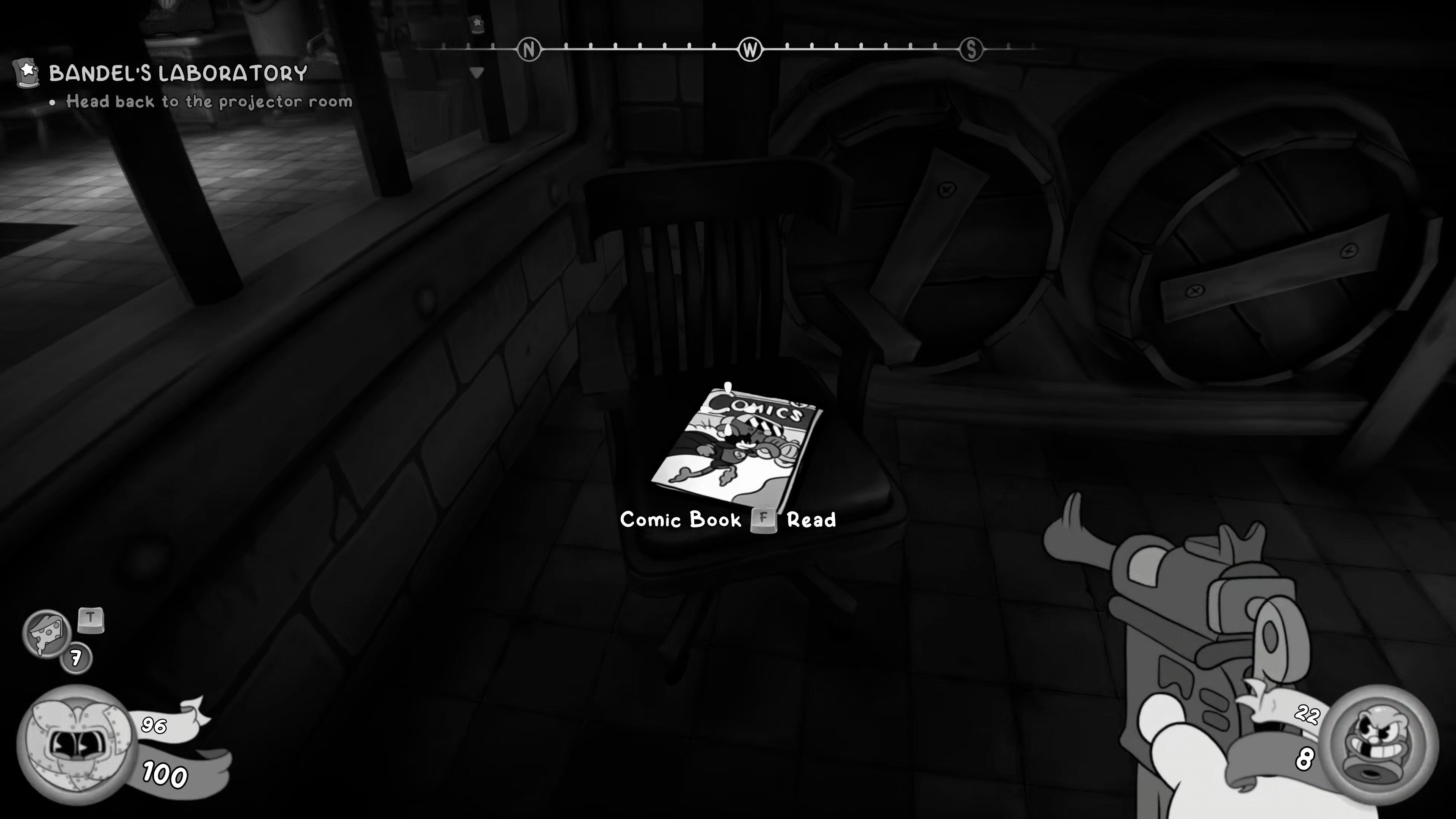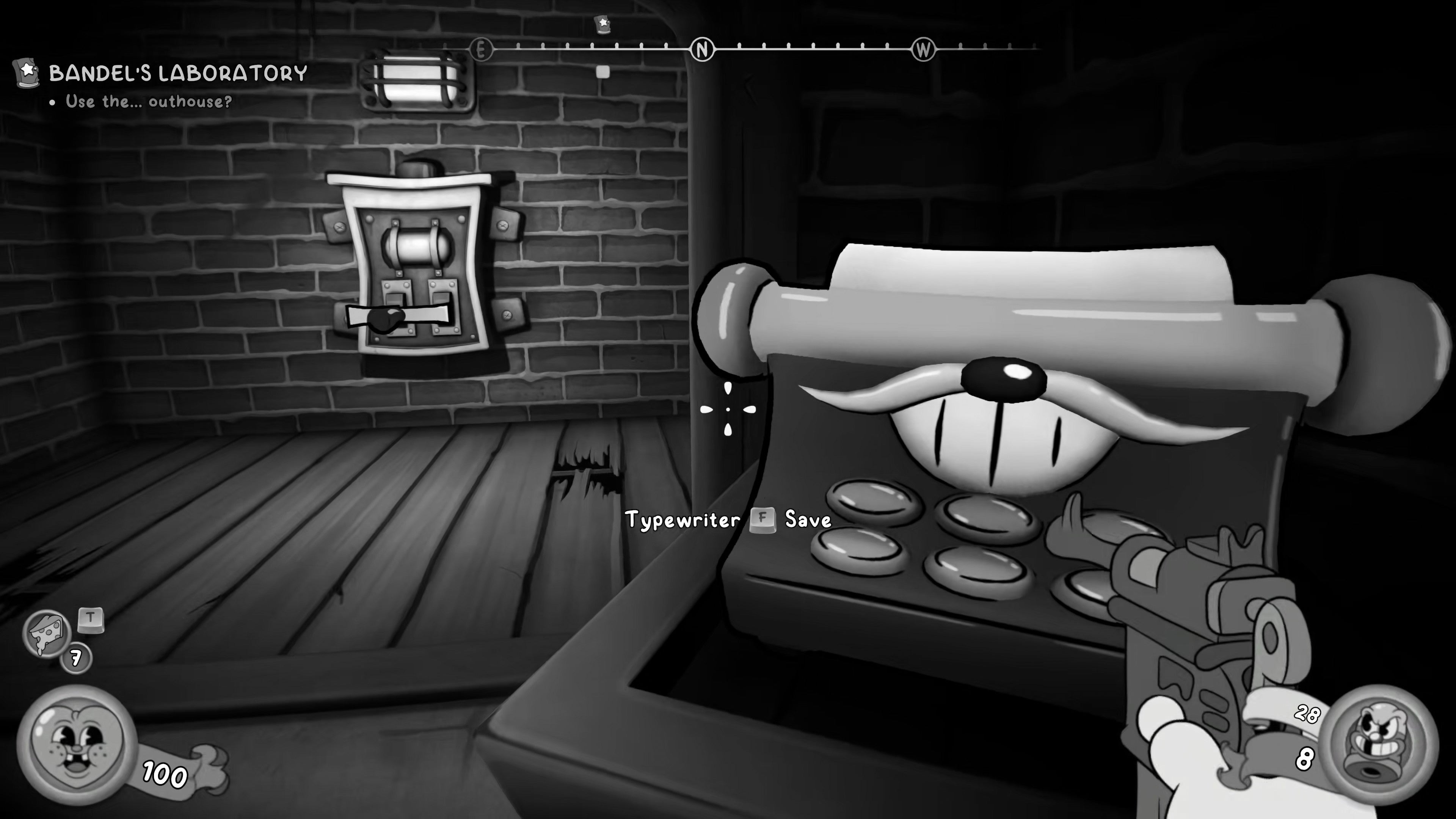 Save at the Typewriter, then head left and explore every nook and cranny for Cash. After that, head right into the next room, and defeat the enemies that spawn.