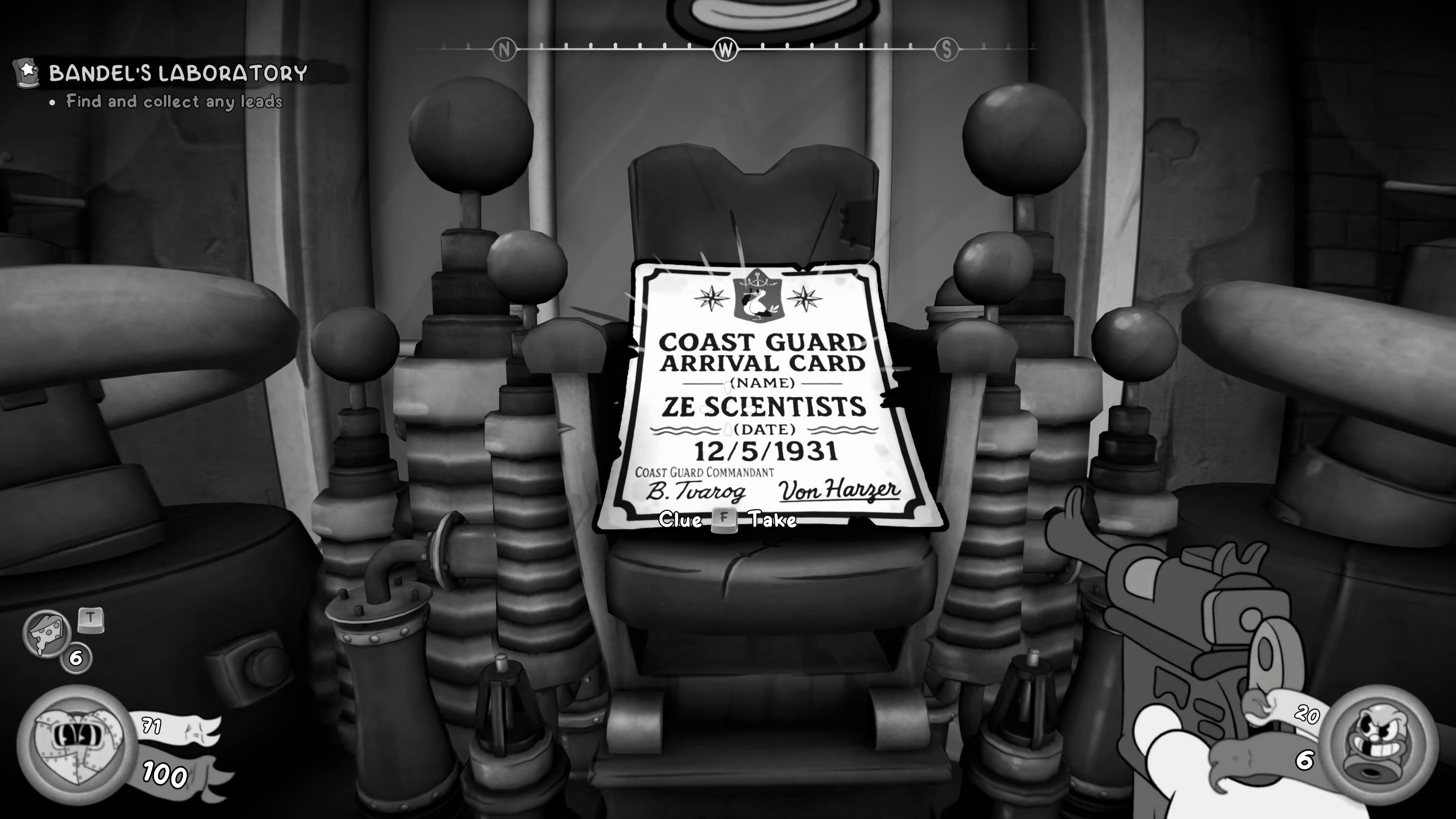 Once Robo-Betty is finally slain, head up the steps and inspect the beautifully presented Coast Guard Arrival Card for an all-important clue for your Crime Board back home.