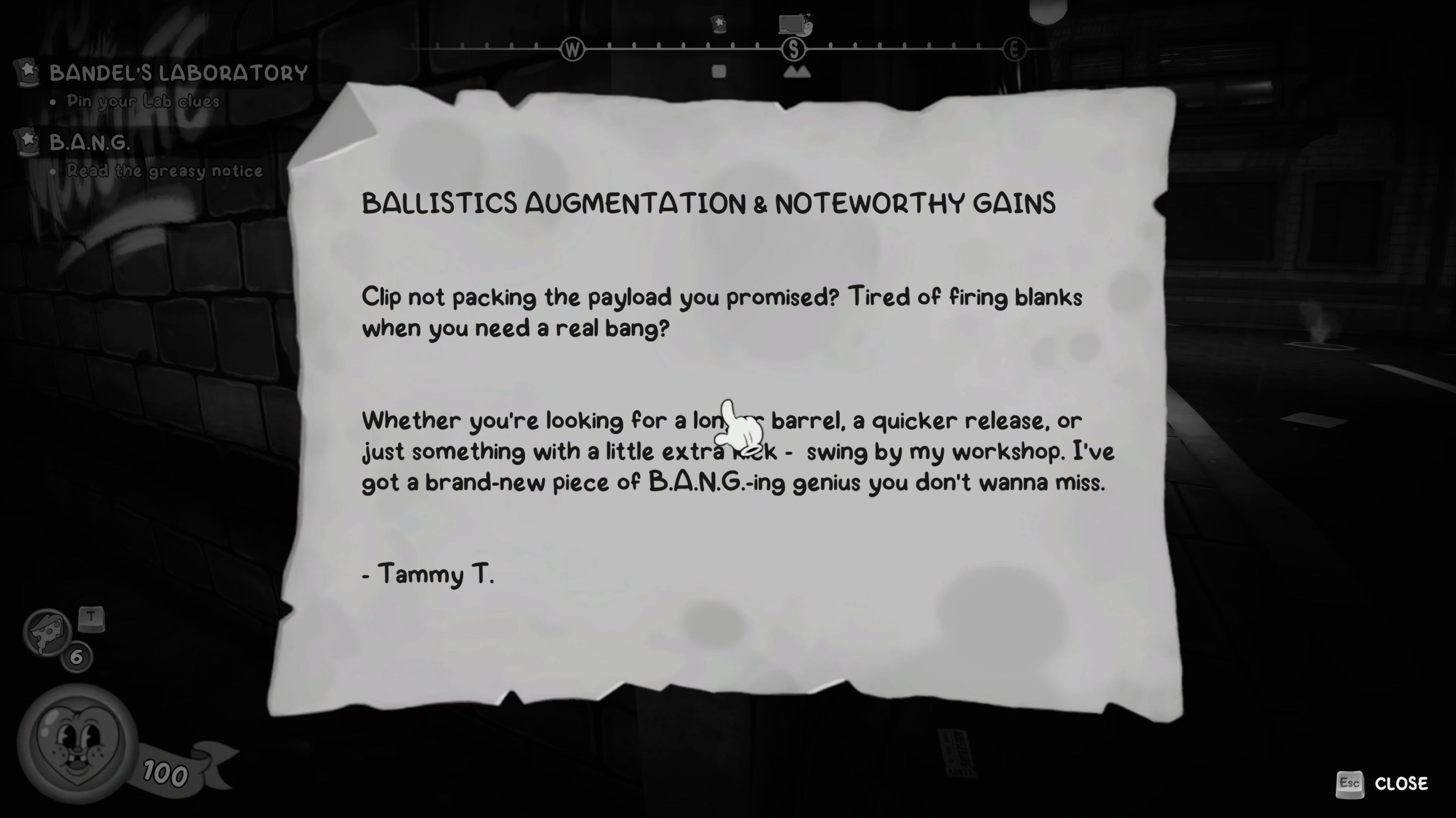 Before heading into your office, head to the alleyway next to the ammo shop, where you'd usually find Tammy. She's not there, but there's a note on the wall you can read.
